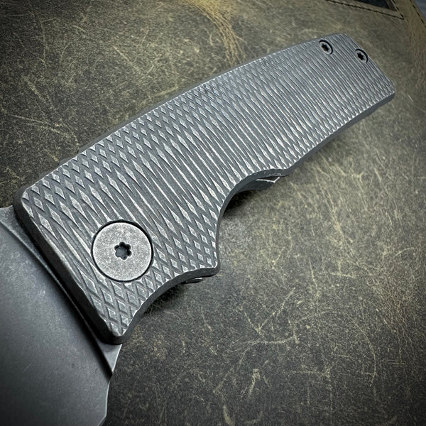 1 standard size Roosevelt in this configuration: 61-62 HRC dark stonewashed Vanax blade, dark stonewashed Golf Putter milled scales, dark stonewashed screws. Green ZircuTi backspacer.